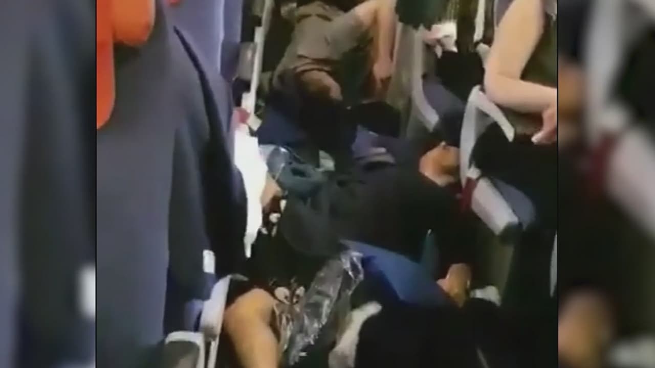 Como proyectiles salen disparados pasajeros de un avión en una turbulencia