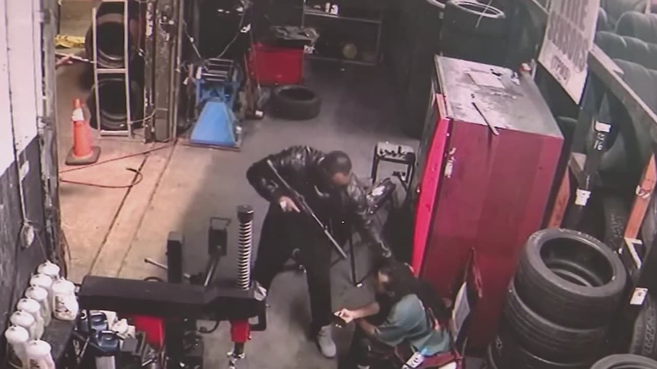 Con fusil en mano, dos ladrones atracan un taller de autos y arrastran por el suelo a los empleados