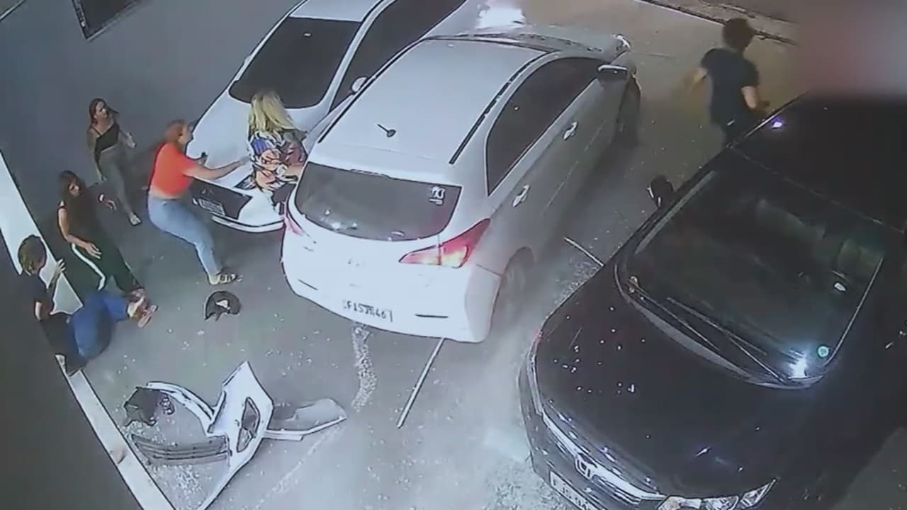 Una cámara de seguridad captó el momento en el que una mujer en Brasil embistió a varias personas que le estaban bloqueando el paso en un estacionamiento. Tras atropellarlas, la conductora chocó con la fachada de un salón de belleza y en su intento de huida estrelló dos vehículos. Todo ocurrió mientras la hija de la mujer iba en el asiento del pasajero.