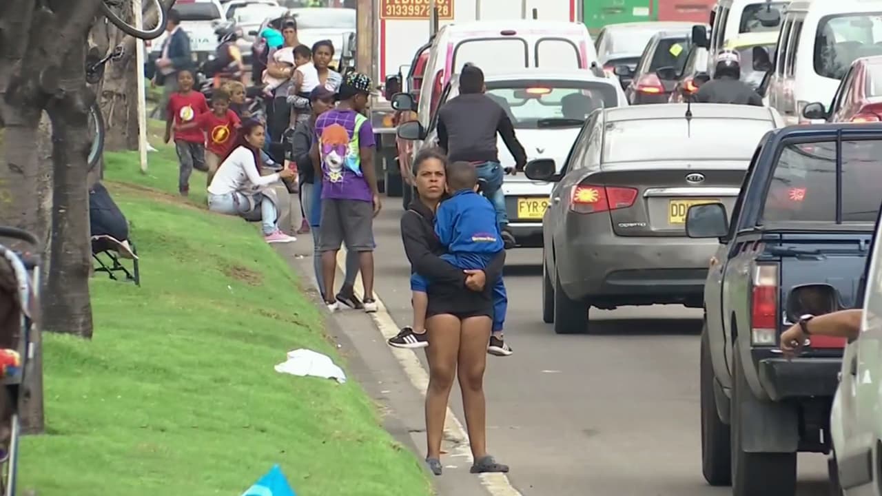 Con sus hijos de la mano, padres venezolanos piden limosna en las calles de Colombia