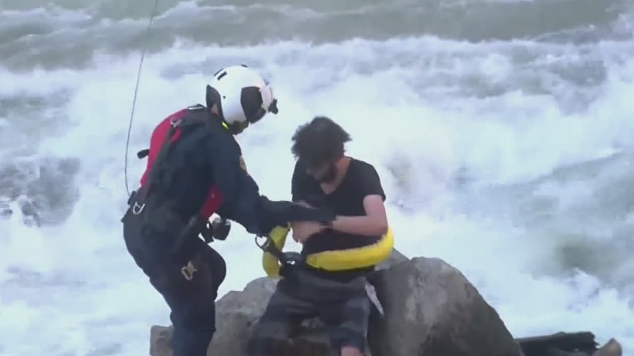 El sujeto se lanzó a nadar en una zona de mucha corriente y acabó arrastrado por la fuerza del agua. Las autoridades lo salvaron de una muerte casi segura.