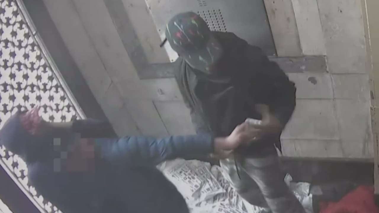 Las imágenes fueron captadas por la cámara de seguridad del edificio y muestran cómo la víctima acabó entregando el dinero que llevaba a sus agresores.
