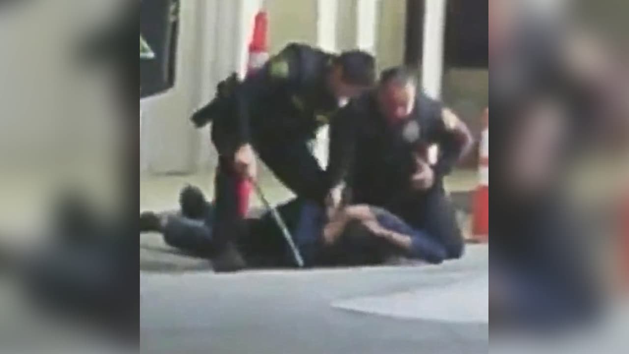 El violento incidente ocurrió en una estación de gasolina de California. El hombre terminó en el hospital y las autoridades investigan si hubo exceso de fuerza.