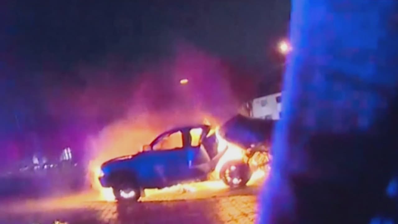 Un chofer en estado de ebriedad huía de las autoridades en Texas cuando impactó una camioneta, que se incendió en el acto.