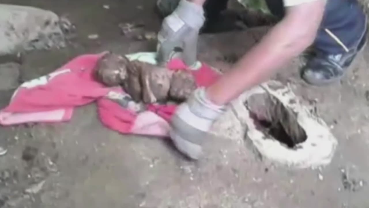 Cubierto de lodo y excrementos, rescataron de la muerte a un recién nacido en Guatemala