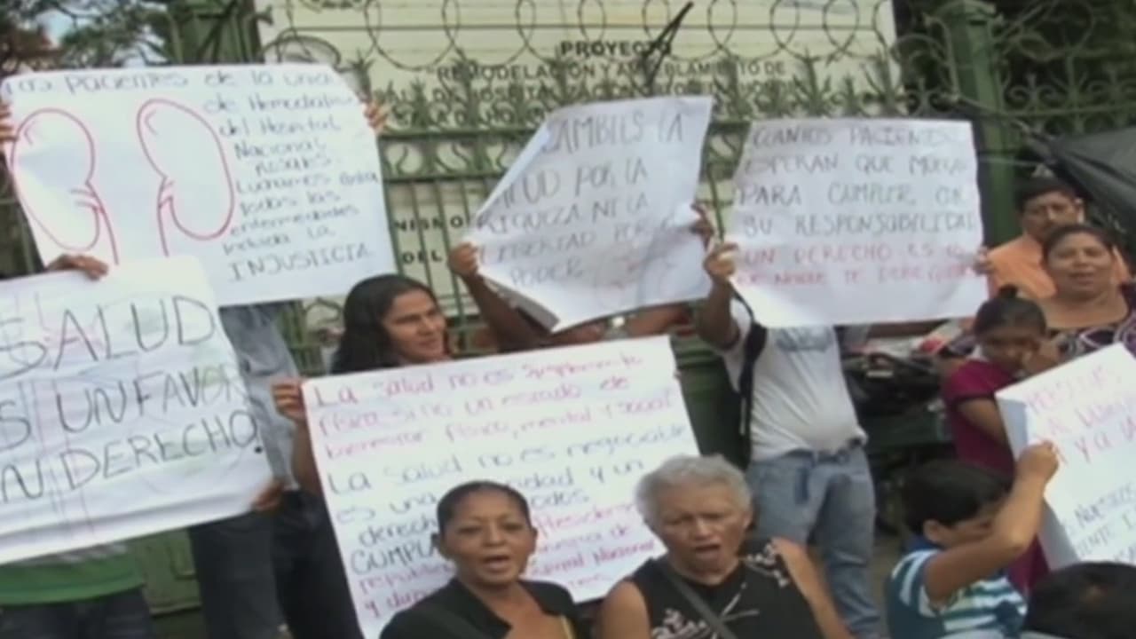 El hospital se encuentra desabastecido y los enfermos de insuficiencia renal no pueden recibir la diálisis que necesitan para limpiar su sangre. Los afectados salieron a las calles a protestar por este desabastecimiento en un hospital público.