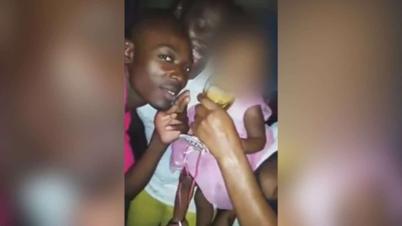 Las imágenes muestran cómo el hombre en República Dominicana le da la bebida de un vaso y una botella.
