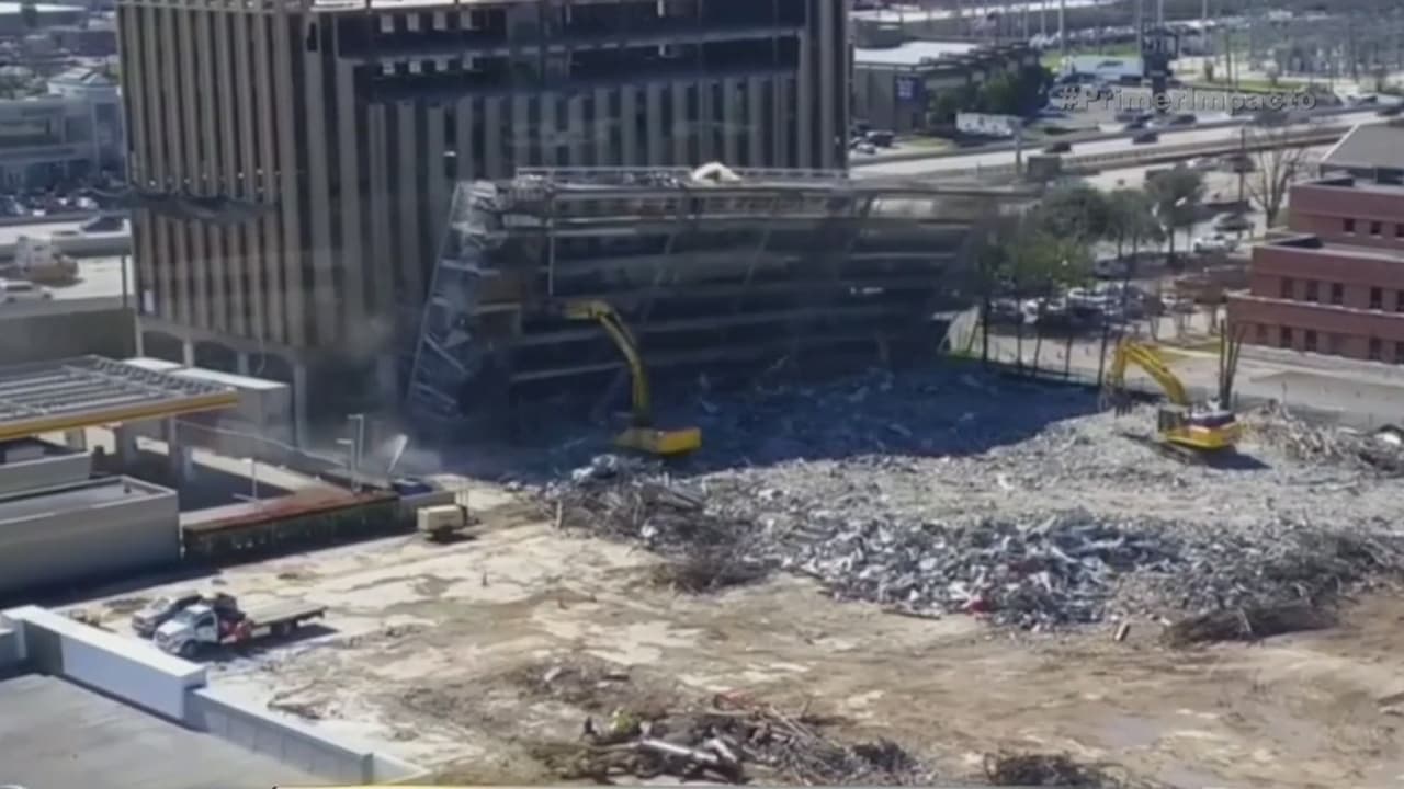 Salió ileso un operador de una excavadora después de que un edificio se desplomara.