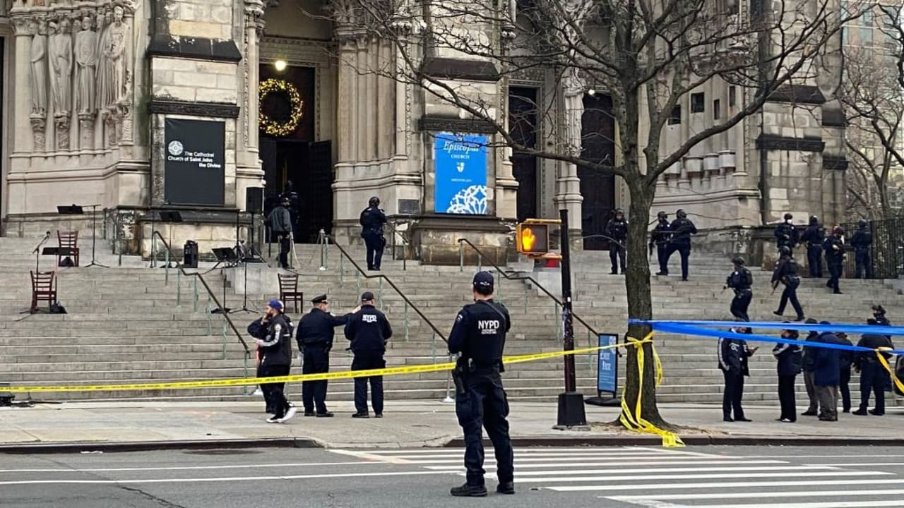 En video quedó grabado el momento en que los oficiales intentan detenerlo al final de un concierto navideño en los escalones de la Iglesia Catedral de San Juan el Divino en Manhattan. El hombre murió baleado.