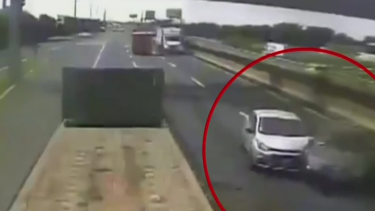 Uno de los conductores impactó al otro vehículo y ambos perdieron el control. Acabaron estrellándose con las ruedas de un camión que viajaba por el carril de al lado.