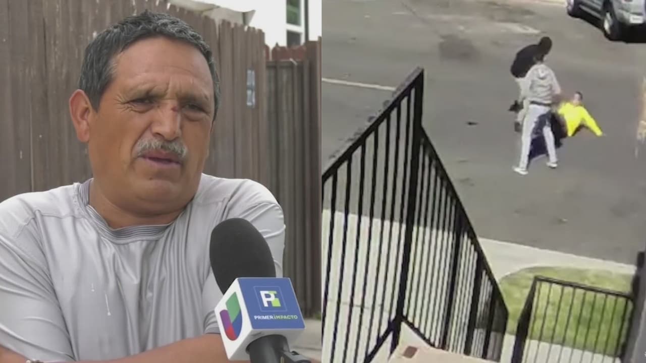 Bililfo Fernández, de 51 años, quedó tendido en el piso tras la golpiza y posteriormente fue trasladado a un hospital. Los agresores escaparon en un auto Mercedes Benz color marrón. La policía en Long Beach, California, busca a los sujetos.