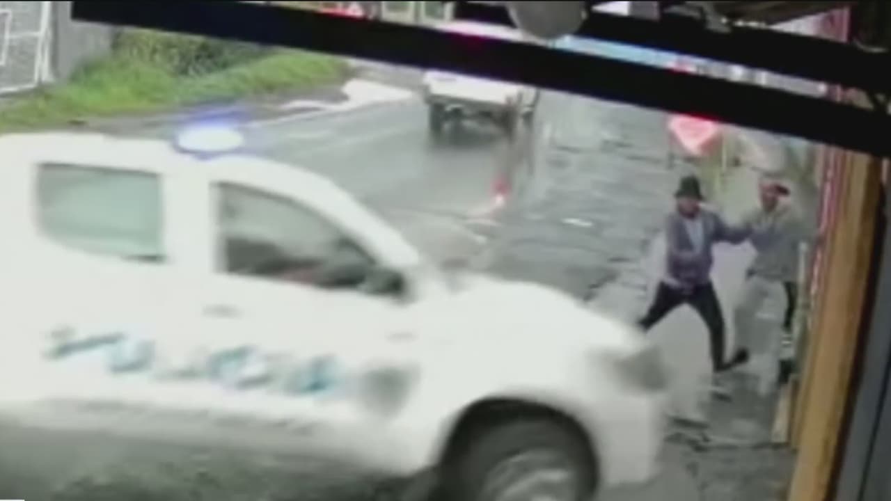 Dos peatones se salvan de milagro tras el derrape de una patrulla policial que los embistió
