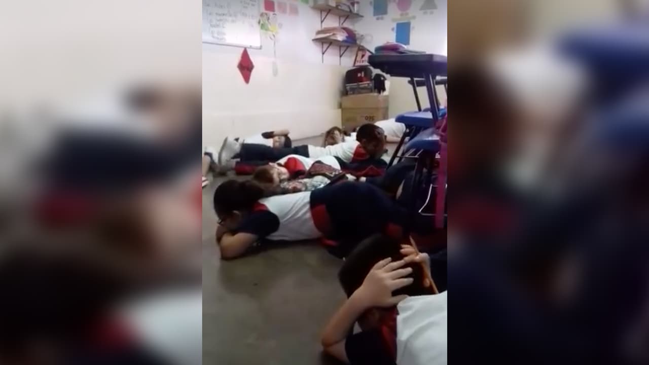 Un video muestra cómo los niños le preguntaban a la maestra si todo estaba bien, mientras ella los distraía haciéndoles creer que era un simulacro. Dijo que grabó el momento para tranquilizar a muchos padres que la estaban llamando.