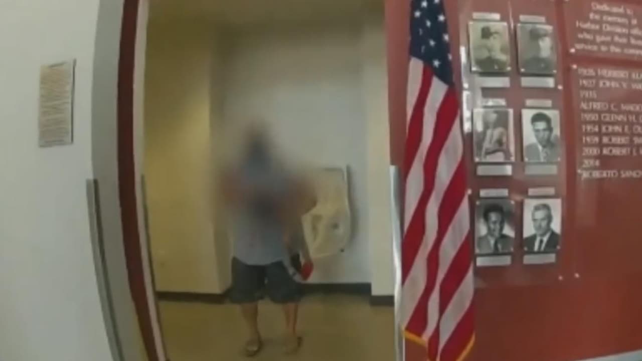 En video quedó grabado cómo el padre del menor corre de un lado a otro para pedir ayuda. Un oficial lo toma, intenta reanimarlo y se da cuenta que no respira. Así logró que reaccionara.
