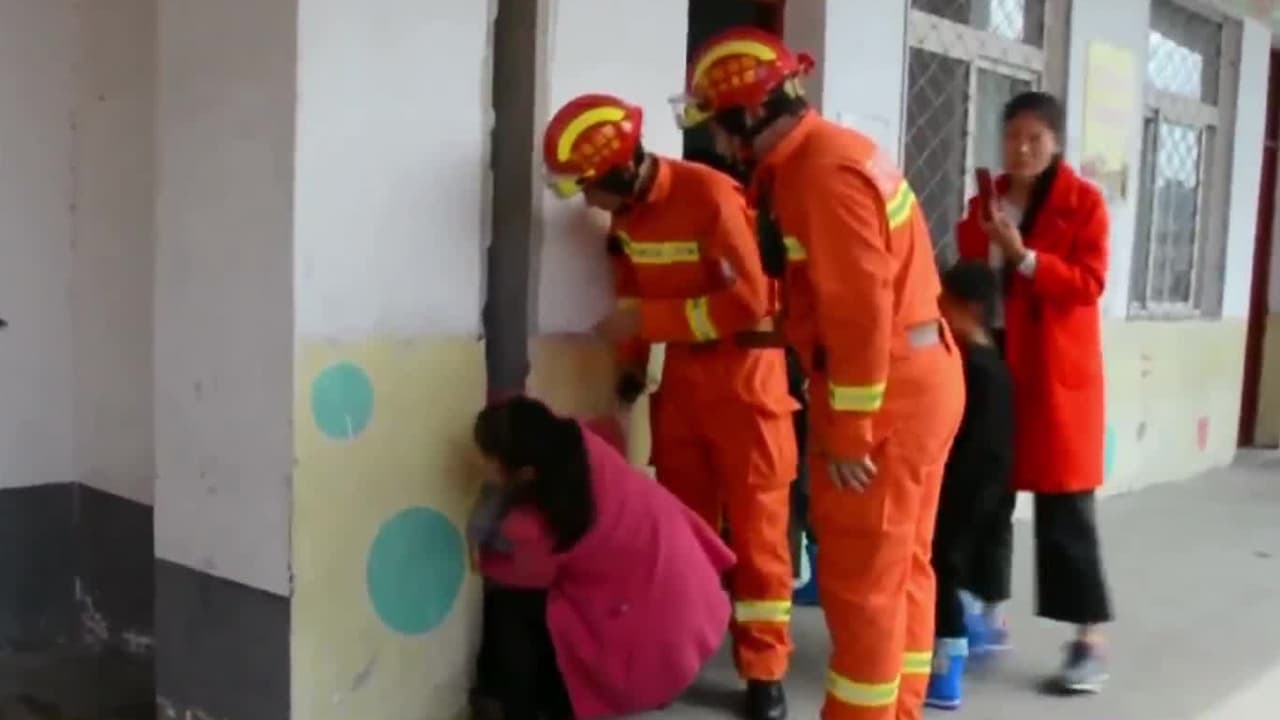 El angustioso rescate de una niña cuya cabeza quedó atrapada entre dos paredes en China