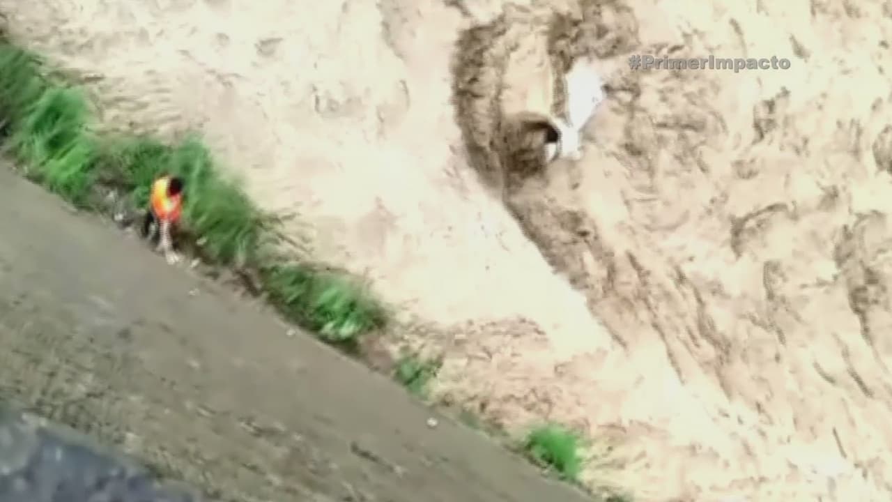 El aterrador momento cuando un auto con dos hombres adentro fue arrastrado por la corriente