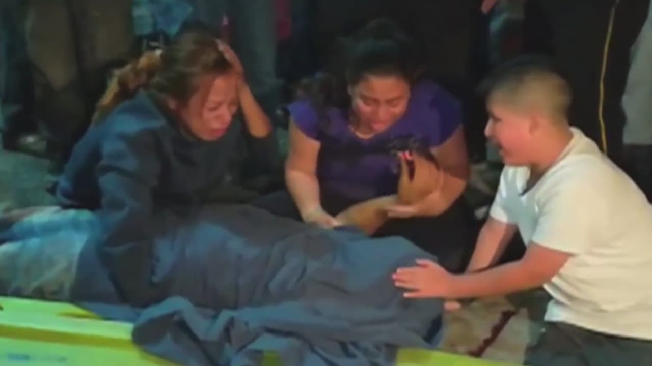 Desgarrador momento en que una madre y sus hijos ven el cadáver del padre de los menores acribillado