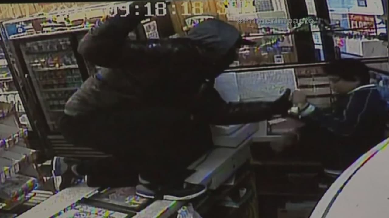 El empleado de una tienda enfrenta a un ladrón evitando un robo