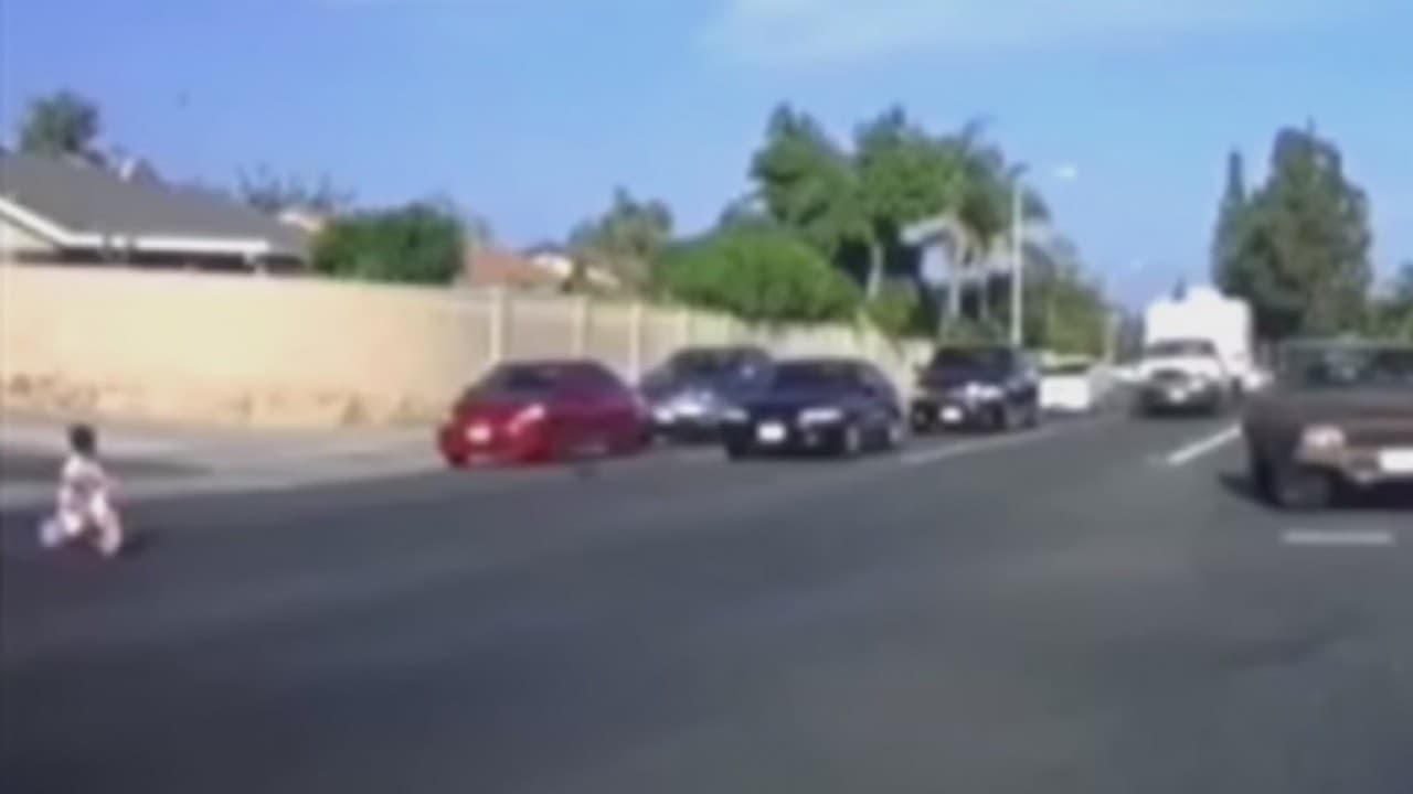 El menor estuvo a punto de ser atropellado por los autos que circulaban por el lugar. Afortunadamente, una mujer lo puso a salvo. Se desconoce cómo llegó hasta allí.