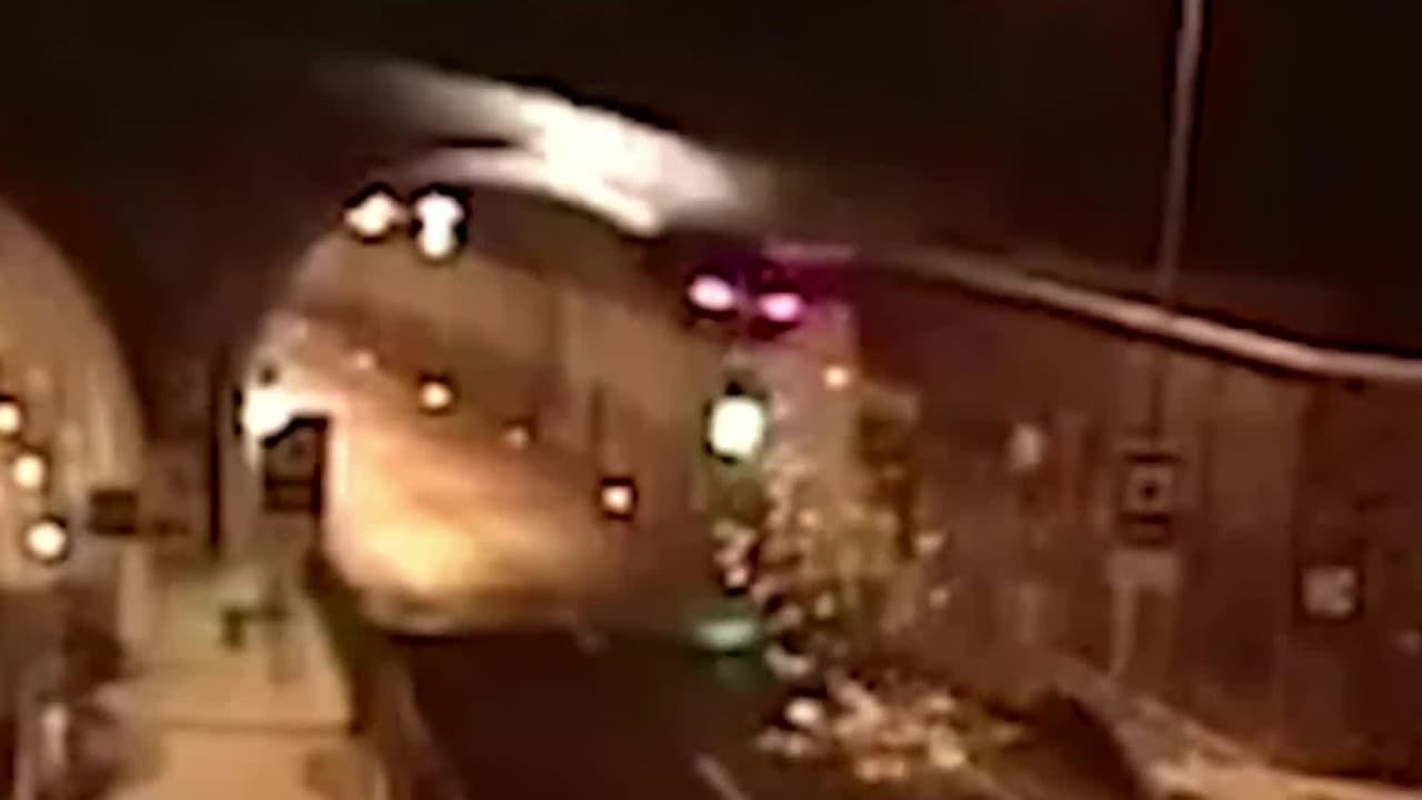 El espectacular vuelo de un auto que acabó chocando contra el techo de un túnel en Eslovaquia