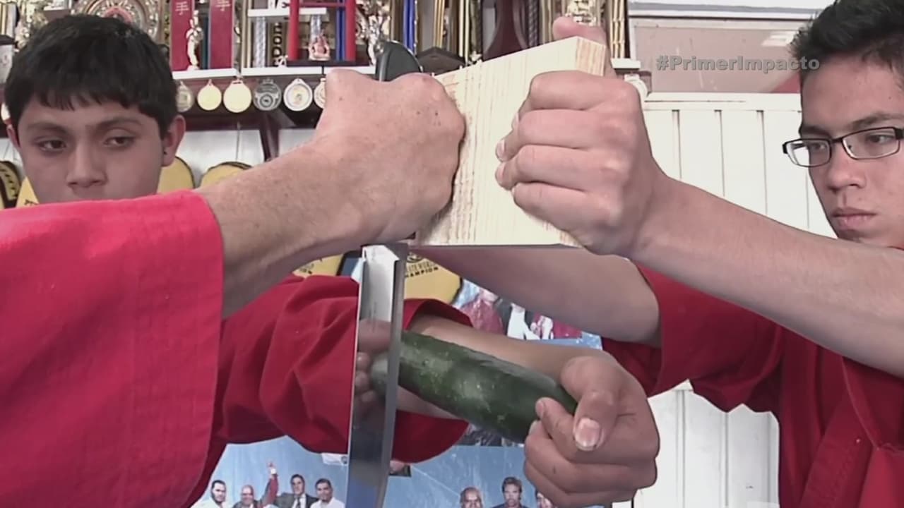 El profesor Hugo Puentes es experto en artes marciales y su especialidad son los rompimientos de precisión.