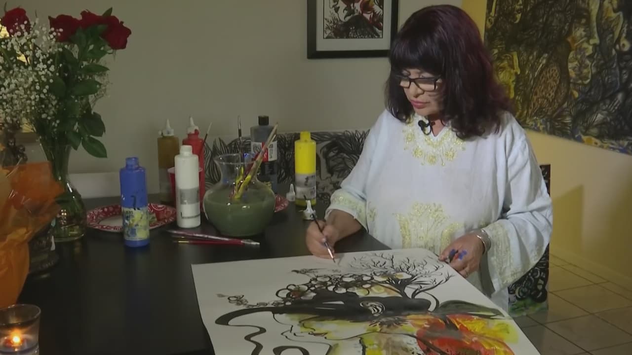 La artista asegura que de niña comía flores para absorber su belleza. Antes de pintar, medita durante media hora para conectarse con la energía de los espíritus que la ayudan a dar sus espectaculares pinceladas.