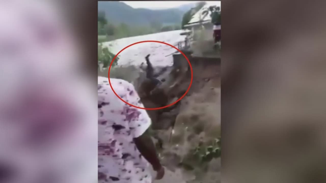 El momento en que el agua arrasa con la tierra y se lleva a un hombre en Honduras