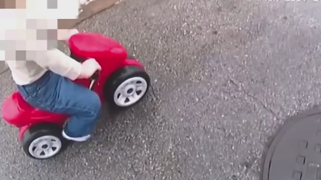 En la cámara corporal del oficial que lo halló se observa cómo el pequeño está tiritando de frío. El menor se escapó de un jardín de niños.
