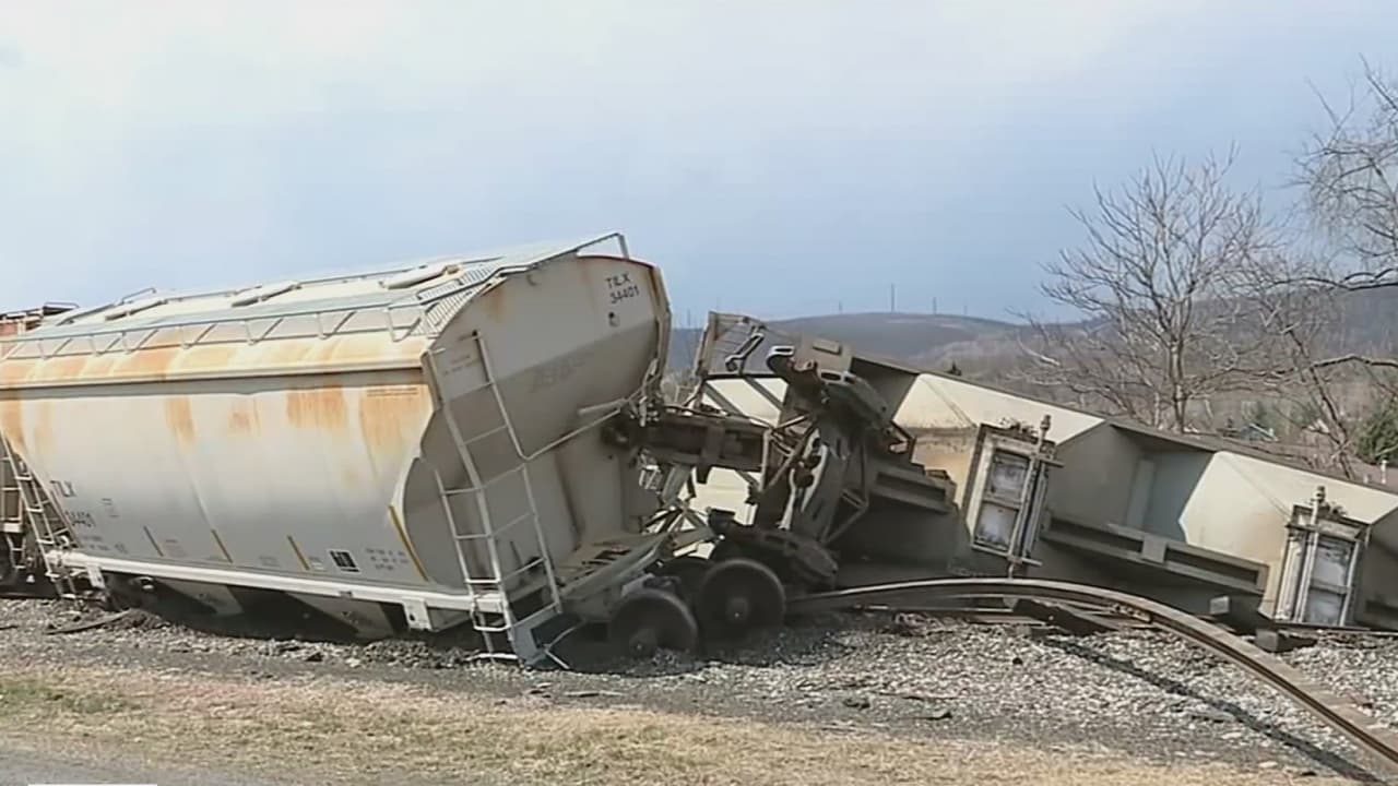 El momento en que se descarrilan varios vagones de un tren en Pennsylvania