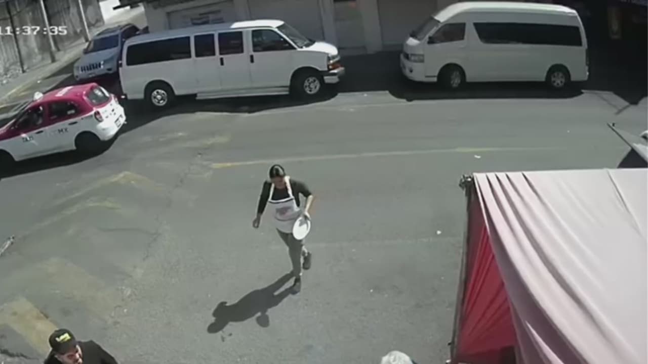 Una cámara de seguridad registró el momento en que un cilindro de gas explotó en un puesto callejero de tacos en México. En las imágenes se observa una gran bola de fuego y a una de la empleadas del lugar envuelta en llamas tratando de huir.