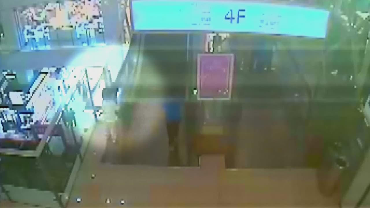 El momento en que una niña queda colgando de una escalera mecánica en China