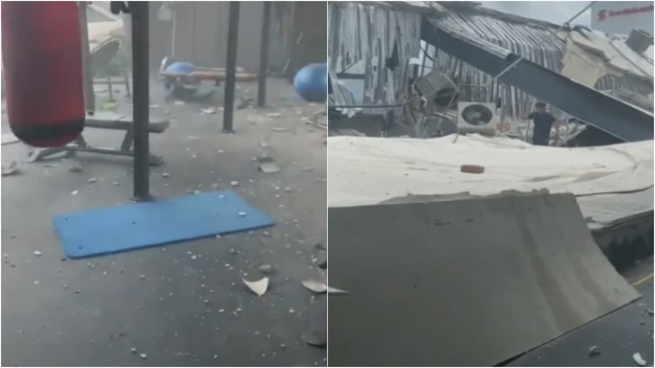 El techo de un gimnasio quedó destruido tras sismo de 7.4 en Michoacán, México
