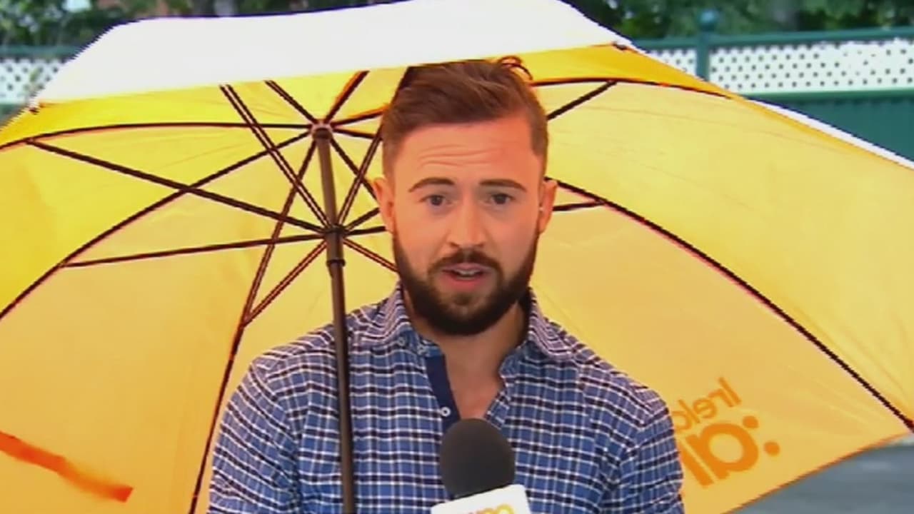 El temor de todos los reporteros del tiempo: que el viento te arrastre con todo y sombrilla en vivo