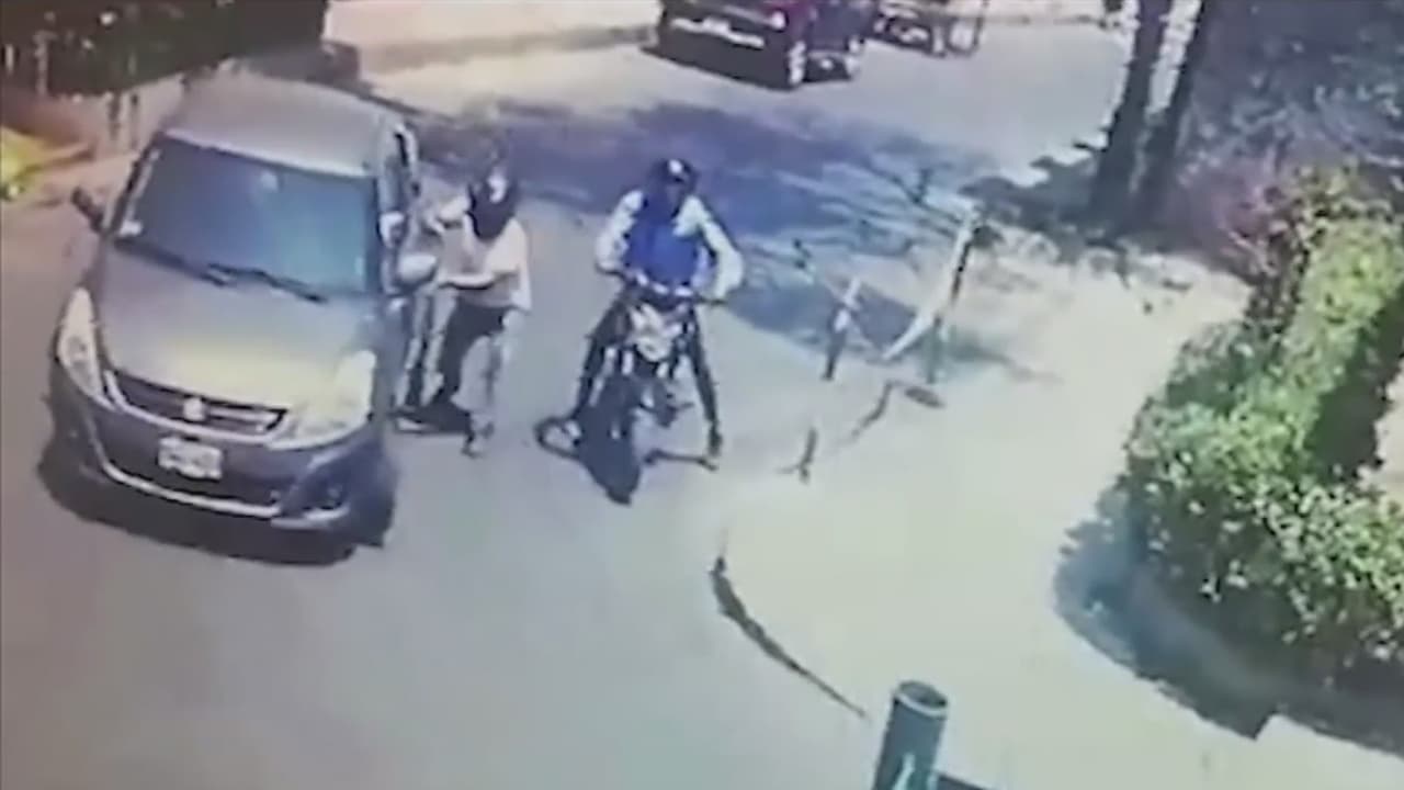 El conductor consiguió huir del asalto manejando en reversa. Pero después embistió la moto en la que viajaban los ladrones.