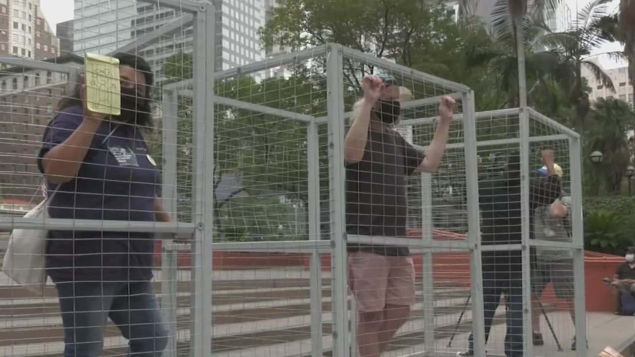 En jaulas levantan sus voces para protestar en contra de las políticas del presidente Trump