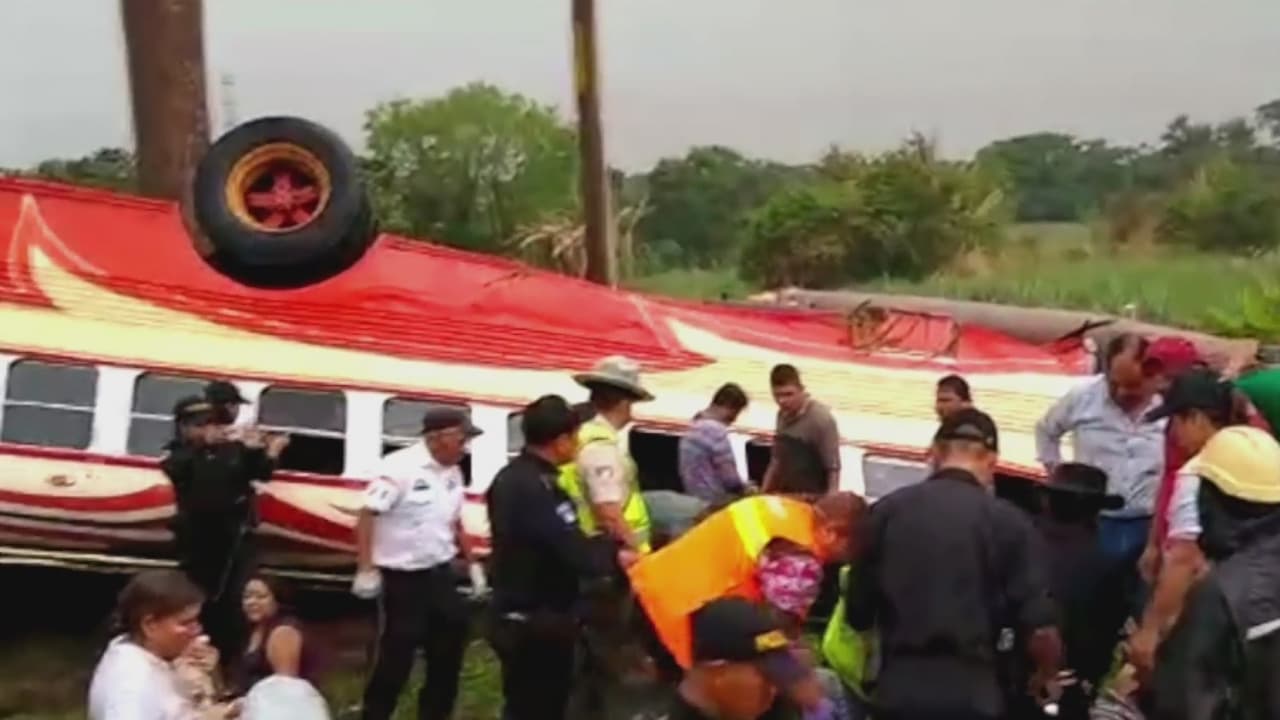 En medio de una lluvia torrencial, un autobús vuelca y causa decenas de heridos en Guatemala