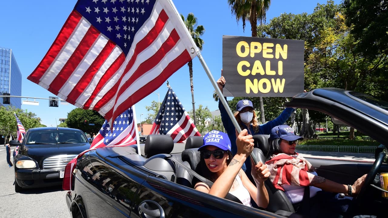 En sus autos, con bocinas y banderas: decenas de personas piden la 'reapertura' de California