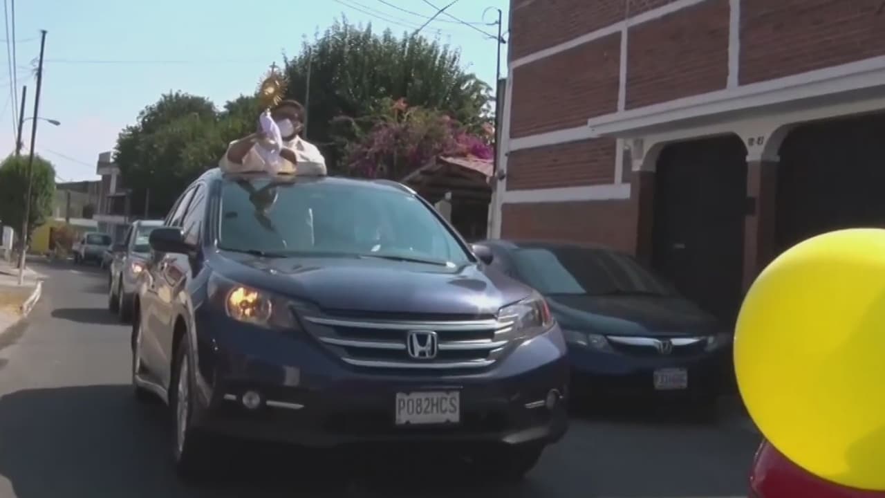 En vehículos y guardando distancia: sacerdotes envían mensajes a sus feligreses