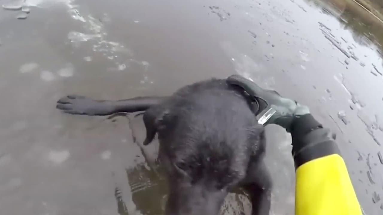 Así fue el rescate de un perro que estaba a punto de morir de hipotermia en un río congelado