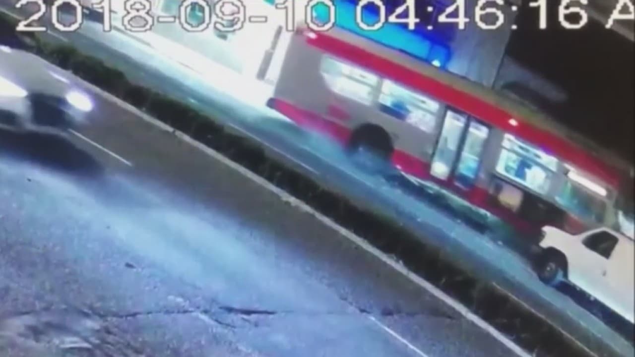 Autobús acaba incrustado en la fachada de una lavandería en California