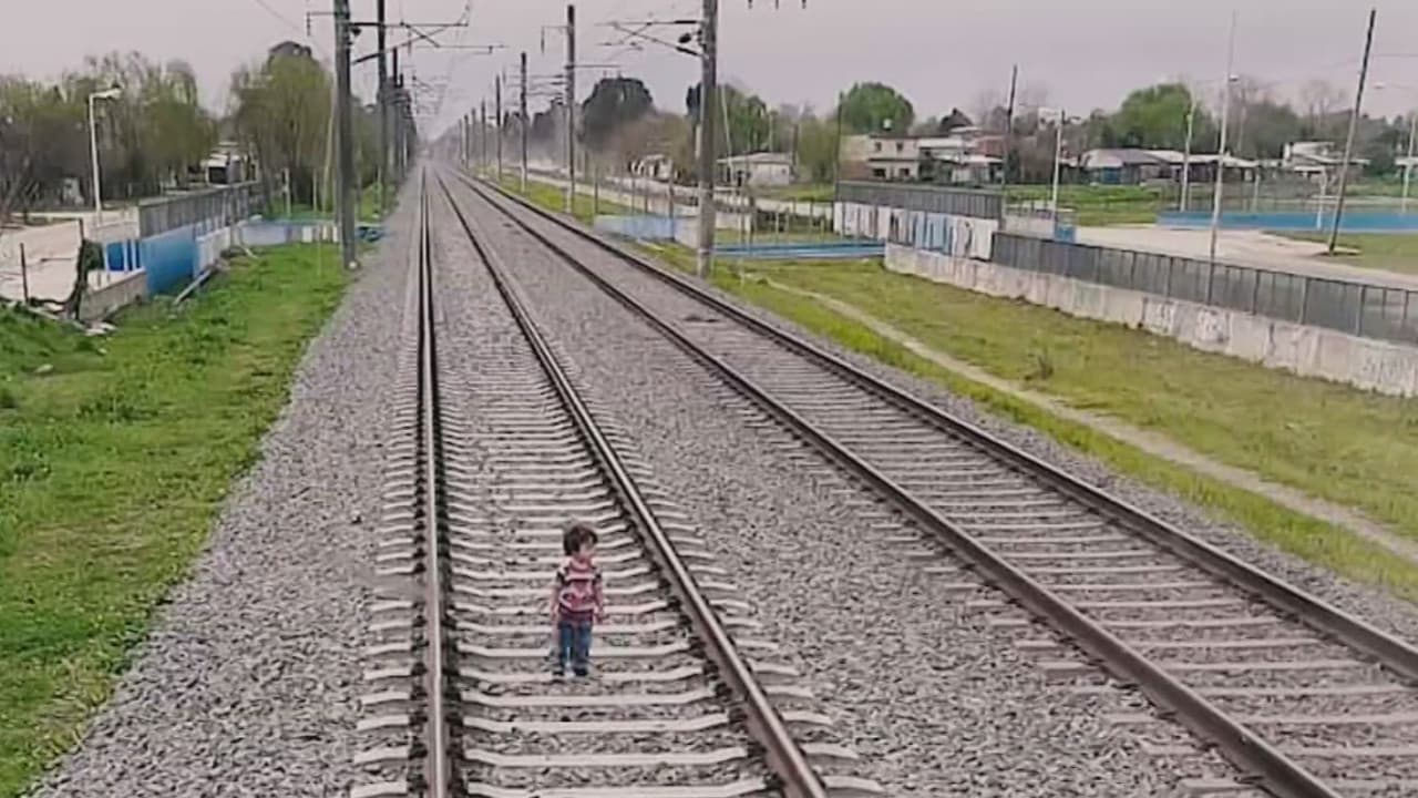 Las cámaras dentro de la locomotora, y las ubicadas en las vías, captaron el momento en que el conductor reacciona rápidamente para no atropellar al pequeño en Buenos Aires, Argentina.