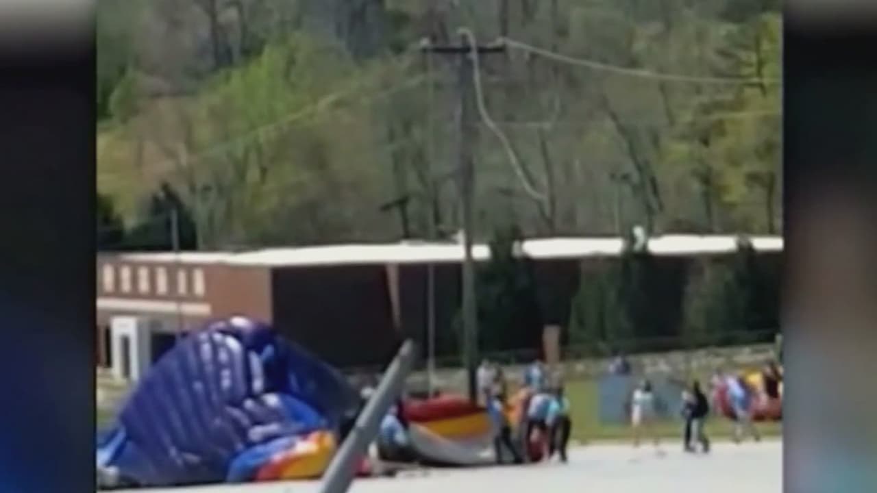 En video: dos casas inflables salen volando por las fuertes ráfagas de viento en Carolina del Sur