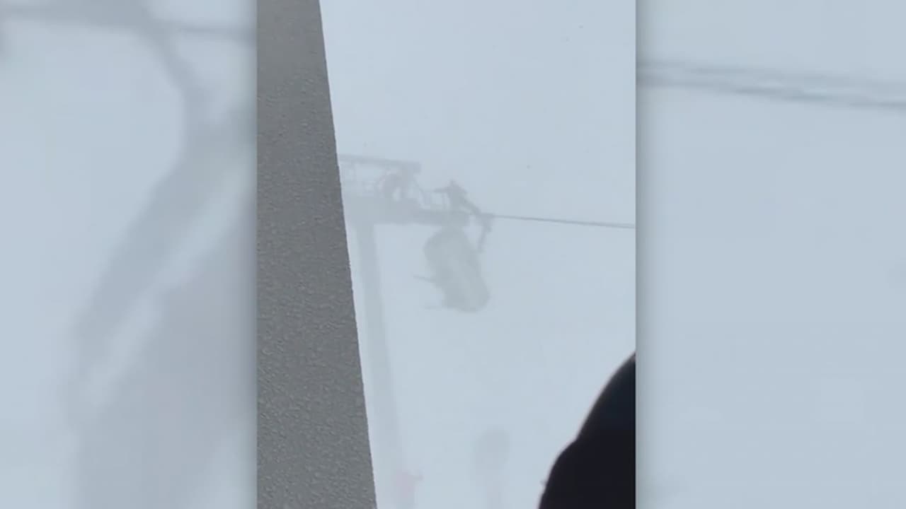 Una tormenta con vientos de casi 90 millas por hora dejó a los esquiadores colgando de la silla. Afortunadamente, lograron rescatarlos sanos y salvos.