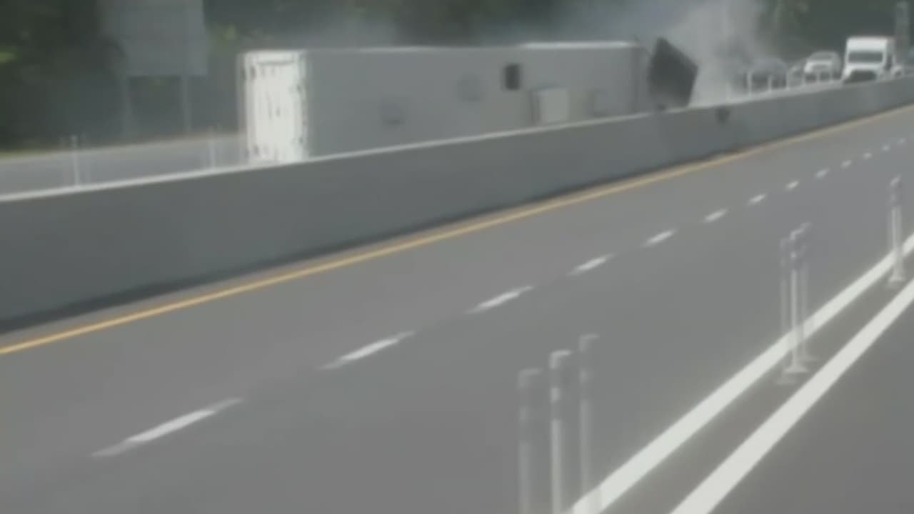 El aparatoso accidente de un camión que se volcó en mitad de una autopista
