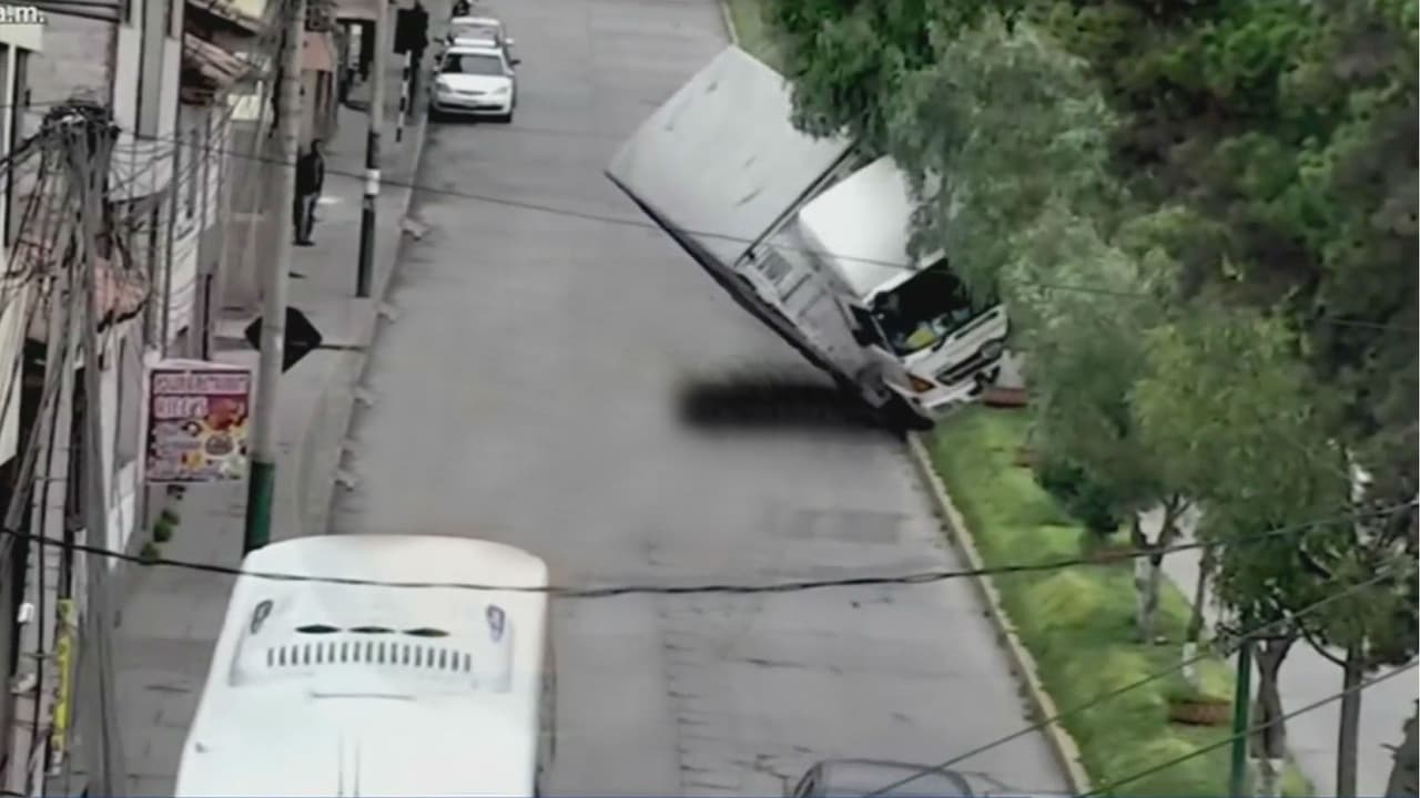 En video: El momento en el que un camión se volcó en una calle en Perú