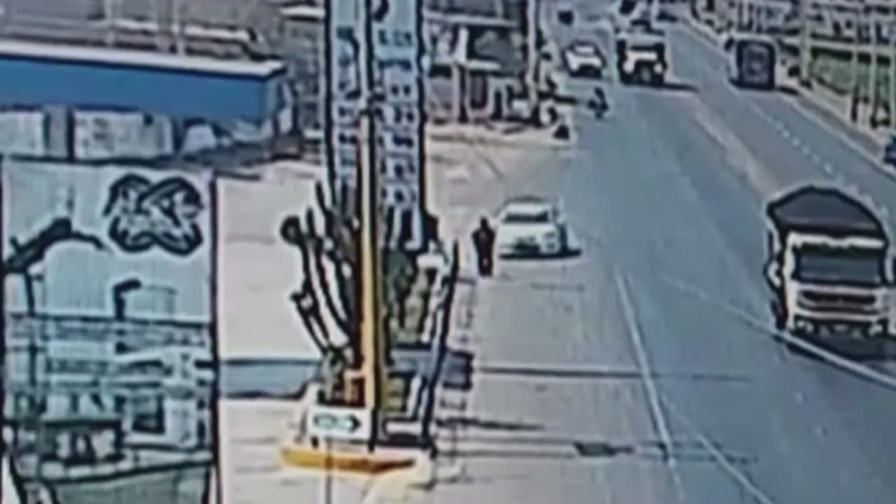 El momento en el que un hombre que caminaba por una calle es embestido por un auto