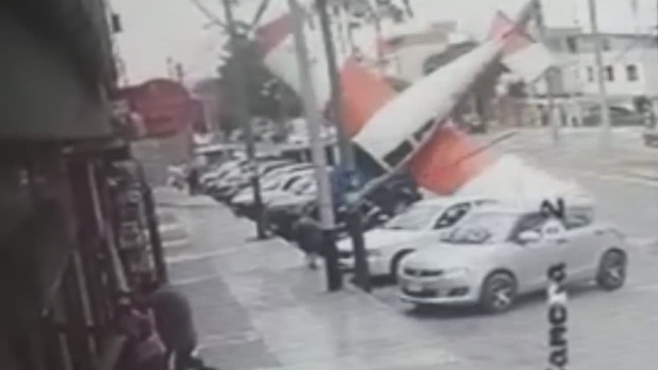La aeronave estuvo a punto de impactar unos comercios situados a pocos pies de distancia.