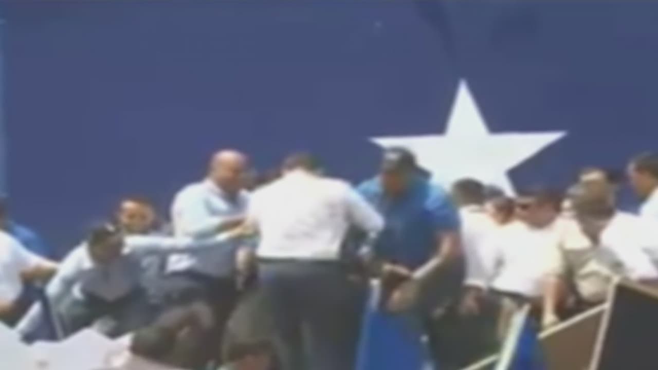En video el momento en que el presidente de Honduras desaparece al derrumbarse una tarima
