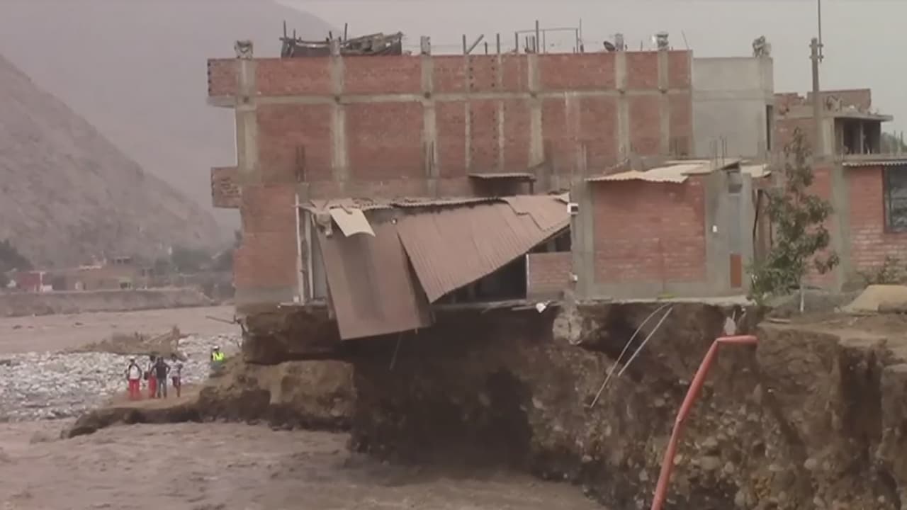 En video, el momento en que una fuerte corriente de agua se traga una casa en Perú