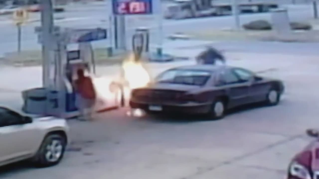 En video: El susto de un conductor cuando la bomba con la que repostaba ardió en llamas